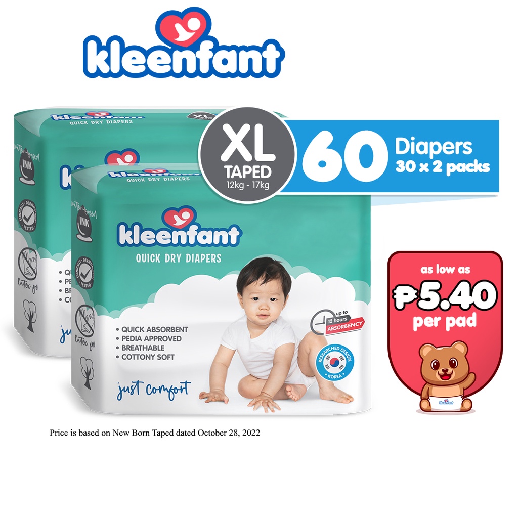 Kleenfant Diaper for Baby Taped XL Pack of 2, 60 pad Baby Needs
